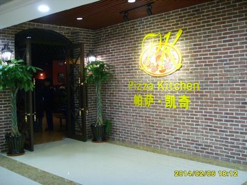 地点在金皇大厦的楼上,直接走大厅电梯,比较好找。因为是包的整层楼,所以不存在走错的可能性,看见墙上的牌匾,进来就好了。融化金枪鱼沙拉,42米,5颗星这家的金枪鱼沙拉非常好吃,这算是意外惊喜吧!而且分量很大,超乎想象的大,跟价格比起来,嗯,算是不亏吧!给这么多金枪鱼,要40块,想想也是,呵呵。。。香肠开会披萨,308米,4颗星最大的有没有,盘子端上来足有1米的感觉,简直就是摆满了那个桌子。大家兴奋的光顾给披萨饼拍照了,完全顾不上吃。等到要吃的时候才发现,我去!怎么下嘴啊!太大一角了,简直是崩溃。味道倒是一般般,薄饼的饼皮算好吃吧!费城牛排,40米,3颗星味道还不如那个香肠呢,一般!总结一下,pizza的话,一般,不是特别铭刻五内的那种。好吧,没这么严重,几乎没有啥印象,很普通。不过不知道是我去的时候人还多还是怎么着,东西半天都不上来。就一个师傅在不停的做饼,也难怪会慢啊!…查看更多