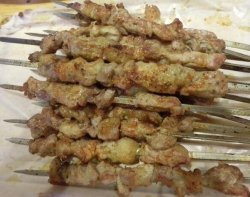 餐厅: 平娃三宝 地址: 朝阳区白家庄路点评:对店名一直莫名其妙,不知所云,其实就以烤货为主的小店,店面不大,里面空间还可以,都是原木结构的桌椅,也比较大,吃饭用着很舒服,价位也较合理,人均消费55元左右。臊子面超好吃,菜码不是混在一起的,已经码放在面条的上面,各种颜色配料的配菜搭配得很好,切得小丁丁也很均匀,红红的一大碗,量大,口味很惊艳,酸酸辣辣,太爽了,面条虽然是细面,但吃着不是面面的,挺筋道的。汤汁也够味,非常好喝。烤羊肉串,肉串串很大个,都是铁签字串起来的,肥少瘦多,我喜欢,微辣口的带孜然的很香,油滋滋的。烤扇贝:个大中等大小,粉丝挺多,里面肉是活肉,蒜香味的,挺好吃,这个季节能吃到真不错。