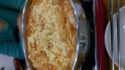 他家的生意真的非常的好,去了是肯定要等位子的,地方不大,小桌子排的也比较的拥挤,不过老板比较热情,选的芝士锅和烤肉锅,2个锅,但上来其实是放到了一起,半成品上来,放在电磁炉上,咕咕的烧开,就可以吃了,芝士其实比较的腻人,吃到最后非常的容易粘锅,烤肉上来就是一团肉,看着不清爽,烧出来还是一团,配合芝士就觉得乱七八糟的一锅,没有蔬菜的搭配,吃起来觉得非常的不合理啊,特别点了他家的夹心年糕,咋一吃,很好吃,吃几个后就很是腻人,总的说了2个人吃1锅那是足够了,老板配合每桌都有一壶大麦茶,比较解腻,但是我吃完的感觉还是很腻,不适合我的口味,下次不会去了查看更多