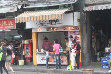 这家店严格说起了只是一家铺子,超级小的,没有堂吃,一般都是拿了吃就走,边走边吃,至于卫生状况只能说睁一只眼闭一只眼吧,对街边小店的要求不能太高。章鱼小丸子,店内的招牌小吃,小丸子的口感蛮烫的,外面比较的焦脆,里面有章鱼肉和白菜,吃起来味道还不错,外面淋上点色拉酱,撒点海苔,作为小吃吃的玩玩蛮不错的。
