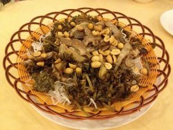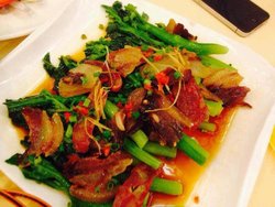 到会馆已经很多次了,评论她还是第一次。中午到会馆,本来是饮茶的,到了门口,看到乳鸽买二送一,当然点了,即点即烧,保证上台还是热辣辣的,而且皮脆肉滑,比栋企鸡抵食,不错👍叫了一盅雪梨海底椰炖猪肉,汤还算挺清的,味也鲜,可惜盐放多了,找来钟哥,交带下次最好不要放任何的调味料,包括盐,等客人来放,希望下次真的能改善。湿炒牛河,已交带混炒,可惜上台时不是,而且忙了放牛肉。椒丝腐乳通菜,菜非常新鲜,好吃,但盐依然放多了。酱爆银杏牛仔粒,牛肉很新鲜,又香又嫩,再配上新鲜的银杏,不错的一个菜👍松露腊味粉丝煲,没有找到松露,也没有找到腊味,只找到粉丝,可想而知那味道是怎么样的了。蒸茄子,用混有芥辣的酱汁蒸茄子,味道非常开胃惹味,不错。👍生煎包,不过不失。厨房水平没能保持一致,有待提高。口渴指数:3级~(口喝指数,由一级到五级,一级,是最不口喝的,五级,是最口喝的)…查看更多