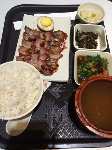 群光楼下的美食很多,需要先充值,购买朋友上午喝了咖啡,胃不舒服就决定吃点清淡的【鱼皮粥】11元,很大一碗,白花花的粥,粥煮得很烂,里面有点点鱼片,比较鲜香。配了一个萝卜、莴笋的泡菜,还不错【水晶虾饺皇】18元,一笼四个,每个下面用胡萝卜片垫的底,皮还是很晶莹透亮,但是底子被蒸得有点润;馅儿太一般了,不软滑,整体不好吃,感觉不值【蜜汁叉烧饭】20元,套餐一份,内容很丰富,一个老汤,两个小菜,一个泡菜,一盘叉烧配半个卤蛋。叉烧肉过于偏瘦,味道一般般…查看更多