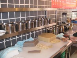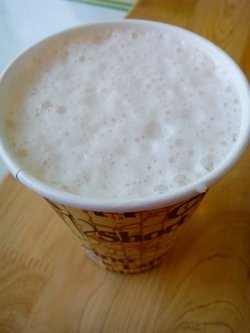 小小的一间铺子,干干净净的,不过没有什么人去,生意不好,店家态度挺好的,很快就验证了,然后选的白凉粉,盛在土碗里,感觉 不错,说实话调料味道真的不错,就是凉粉味道有点怪 ,没有我们平时吃的白凉粉那么细腻,要硬一些,不过多吃几口习惯了以后还另有一番风味,花生浆是现打的,所以用的时候比较长,差不多在凉粉快吃完的时候才上来,热的,不过味道真的很浓,很好喝,感觉比它家的凉粉还要出彩
