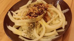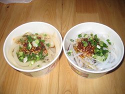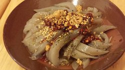 按到门牌号找了半天没找到,不是位置不好找,是因为写错了,写的是10号,其实门口巴的是9号,而且新街后巷子这一排卖吃的都挂的是单号。不过东西还是不错的,点了一份黄色的豌豆凉粉,熟油很香,凉粉和到里面的花生渣渣一起吃,好香,不过花生渣渣太少了,太小了点,再大颗点再多点就更好了,朋友要了一份白凉粉,说没有我的黄凉粉好吃。送的花生浆就不摆了,真的太好喝了,还是现榨的,巴适。
