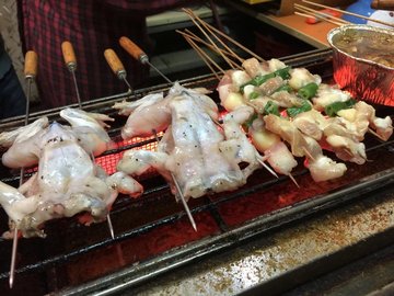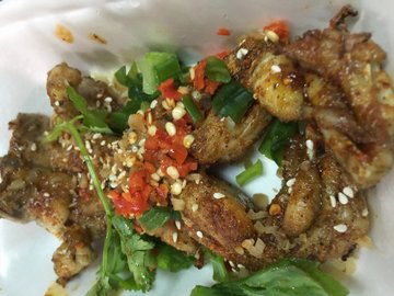 最爱的夜宵,没有之一。能让我每天驱车过来打包的,只有他们家!!最近真是是中了他们家的毒,天天着了魔的每天过来打卡打包,老板从对我没印象,发展到现在打包前我就要打个电话叫烤起,来了好不浪费时间直接带走的节奏。因为听说最近要搬地方了。生怕以后吃不到或者不方便了,更是最近每天都要去祥和里打包啊!!我已经深深爱上他们家。老板娘皮肤白皙。老板也是很文艺帅气。果然是文艺一条街的祥和里。最初发现他们家,本来是来祥和里吃甜品的。在回去的路上无意中看到了这家小店。因为之前从来没有看到过专门卖牛蛙的小店。很感兴趣。就怂恿夏天先森要不要试一试。他们家很有特色。号称是蓉城首家烤牛蛙。看起来他们家的脑花,脆骨都不错。价格也不贵。我只点了一份牛蛙想先试一试。后来碰到一个人来打包直接点了十串脆骨带走。看到他烤脆骨的过程我都想吃了。才2块钱一串。每一串上面一个脆骨都配合着搭配了一个蒜。看起来颜色特别好看。店门很小。门口也只有两个桌子可以供人堂食。老板娘看起来手脚很麻利的就从里面拿了食材出来现烤。整个过程看的我口水流啊流。脑花10块。牛蛙是12。也不贵。但是真的味道很棒!牛蛙真心超级好吃超级香。门面很小的。就在滋味烤鱼附近。醒目的招牌,很好找到。生意很好。看到墙上的画我就口水流。有时候我也会烤了直接趁热吃,现在冬天一般都是现烤了就在车里吃了,生怕等回家吃了没有那么热了就错过最美味的口感了。我很喜欢守着老板烤的那个过程,看着切猫儿大腿的肉,幻想一会啃他的肉嘎嘎,已经很爽了哈哈。五花肉、脆骨、掌中宝都很好吃,又不贵。连烤蒜我都吃了,之前我是从不单独吃蒜的。我的最爱。味道刚刚好。辣辣的,但是不是干辣。而是越辣越想吃。辣的很爽快!香嫩的切猫儿肉,配合着大头菜颗粒,小米辣,撒上香菜,简直堪称完美!!太好吃了,我可以一个人一口气吃3个,不豁你,不浮夸,根本停不下来。还有脑花也很入味。限量的。好多人晚了来这也没有了,那也没有了。一般8,9点还是要啥啥有的。过了10点来就有点悬了。我才不得告诉你,我是一边写,一边流着哈喇子,恨自己今晚没切打包成,而是在这里分享,哎。,貌似要搬迁了,要吃的搞快哦~…查看更多