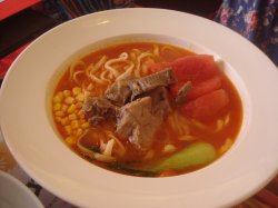 康师傅私房牛肉面,算不算把康师傅方便面提升了一个档次?其实何止一个档次,这里的招牌牛肉面居然卖168元一碗,而且每天限量10碗,有钱都不一定吃得到~来吃过两次,大多数面食价位在25-25之间,碗挺大,面条比较筋道,牛肉、牛筋都炖得很烂,汤也很浓郁,但是就我的心理价位而言,还是觉得贵了,性价比稍低。这里还有精致小菜和冷饮冰品,和朋友随便吃吃饭聊聊天,还是挺合适的。总体而言,像是一个环境稍好的中式快餐店,交通也比较方便,适合学生来或者吃个简餐。…查看更多