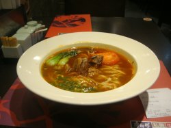 店里装修的很现代,色彩明快,环境很不错。在卖牛肉面的餐馆中门面算是很好的了。可以坐在窗边观淮海路的风景。只不过夏天时空调开得太冷,冻得很。服务员有点忙,找了半天找到一个说空调的事,回答说他们也没办法。菜单很有特色。上面标有各色牛肉面,不算便宜。点了私房红烧牛肉面。有一点辣,牛肉很烂,很入味,酱香浓郁。整体味道不错,但老是觉得跟康师傅牛肉方便面的味道很雷同。... 另外点了牛三宝面,一样的感觉。…查看更多