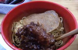 第一次找到这家近下午二点了,已经收摊了,没吃上。这次正好在附近有事,所以特地又去了一次。当天下雨,去的时候又才十一点多,所以人不多,不用等位。门口没有什么标志,按照门牌号才找到。是从做馄饨的那一边进去的。门口撑着几把雨伞,伞下是几张凌乱的桌子。只是写明特定区域,不让人入座。两个人正在包着馄饨,背后是煮馄饨的炉子。随便问了一个阿姨,点好了一份面。老房子的左手边就是厨房,简单老式得不行,连厨具都有几十年的历史了。穿过去就是就餐区了。五、六张桌子随意地放着,边上还供着佛像。桌子上前面人吃过的碗筷没人收拾,桌子上也有些狼籍。不是很干净啊。大厅的挑高挺高的,只是一角是渗过水痕迹。墙上有些奇怪地装饰着竹席,挂着一些饰物。角落的柜子上是各种浇头。感觉就像进了自家一样。老板人很是活络,忙着结帐、招呼,上菜,不由分说地给客人的小馄饨里加胡椒。。。他很自豪地说它家做小馄饨有三十五年了。我点了一份葱油拌面,加上一份大排和一块素鸡,总共十来元元,够实惠的。本来还想点一份小馄饨,可是老板就是不让,说吃不下,不要浪费了。怎么说都不给,其实吃完没觉得很饱,却也说不动老板。还有这样的! 算了。葱油拌面:份量不大,我看男生点都是加一份小馄饨的。端上桌后,我还在收拾东西,老板急了,让我赶紧拌,是怕糊了吧。面条是很细的碱面,有弹性有些韧劲,口感不错。酱香味较浓的。大排不是油炸的,上面裹了一层粉,吃上去软软的,但不柴,多汁。素鸡很爽嫩好吃。送了一碗汤,不怎么样,很淡,且有味精味。很本帮的面条,虽不浓油,但赤酱。还可以。没有想象中的惊艳,却是一份上海人对老弄堂家常的回忆。查看更多