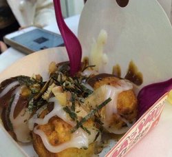 开在中山公园的地下一这里,地方坐落在一个不太起眼的角落里,坐在店内堂吃的,差不多周围有7、8个人吧,整个章鱼烧吃下来味道一点都不腥气,章鱼肉很大颗,能明显吃的出,色拉酱味道有点酸咸型的那种,就是4个吃完感觉自己完全没吃够啊。查看更多