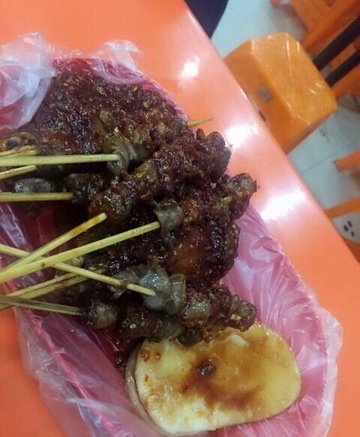 最喜欢逛夜市了,感觉美味佳肴最最多了,吃起来也超级有满足感的呢,点了鸡心,里脊肉,骨肉相连,年糕,老板看我一直来吃的还多送我一串年糕,感觉好开心,味道也超级好吃,酱料味道做的很鲜香,肉质会有点老,但是就是这个味儿。