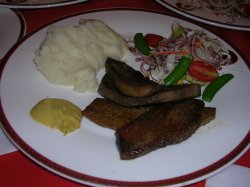 红菜汤 18元,味道很好,量不小蘑菇葱牛排 40元,不喜欢洋葱,但是牛排很大,但是感觉肉质不太好,有些糟培根牛排 45元,牛排很大,肉质比较好,味道不错,就是培根有些火大还有一个牛舌,感觉一般,总是觉得牛舌不够熟可能是中午的缘故,想要土豆泥,被告知还没有做出来,所以配菜要的薯条,总体感觉一般,外国人可能会喜欢.查看更多