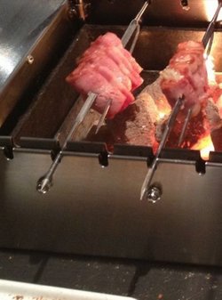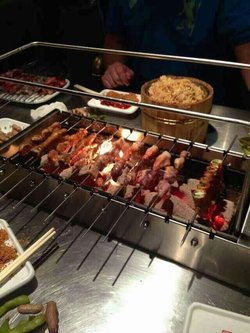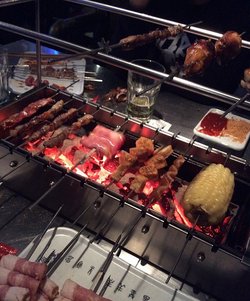 很久以前只是家串店,这家店很不错,特别喜欢。北京的分店现在越来越多了,每家的装修都是一个风格。里面的灯光比较昏暗,环境很好,有远古的感觉。这里的烤串很方便,不用动手,炉子是会旋转的,肉肉可以均匀的加热。喜欢肉筋,挺不错的,肥瘦相间,吃起来很嫩。查看更多