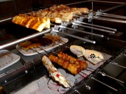 很有名气的店铺,朋友推荐过,据说很火,果断的尝试来了。炉子是自动的,相对来说就省去了人工,但也少了一些乐趣鸡翅10元一串,半打(6个)38元,还挺实惠的,做的很好,很多种口味选择,鸡翅像是淹过的很入味,也很新鲜。玉米不是甜的是有点糯的;鱼豆腐,烤制时间稍微久点鱼豆腐就自己涨了起来,鱼豆腐好像没有任何味道;牛肉干,肉很干,有嚼劲培根卷,一种里面加的金针菇,一种是韭菜生蚝、扇贝也是个半打,里面大小不一,味道还可以,尤其生蚝烤出来的汁很鲜美烤面包好吃,推荐啊。查看更多