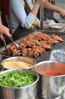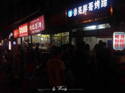 电子科大后门这家徐亮胖哥烤蹄是总店,火了很多年了~但一直对烤蹄不感兴趣,所以也不可能专门跑过来~正好在这边办事,顺路,所以来看了看~果然这一排都是典型的苍蝇馆子,各种小店云集~感觉找回了大学的赶脚。来的时候人还不多,并没有排队~但是后来在旁边吃完东西出来,五点钟的样子,就看到这儿又开始排长龙了~这么多年了,人气还那么旺,确实也不容易~12元一个烤蹄价钱也不贵,分量还是可以的~上面撒了一啪啦海椒面,其实味道真的很一般~而且蹄子烤得并不够脆,所以吃了一口就觉得闷~当然每个人的口味需求都不一样,总之我是真的觉得比较一般~嚐哈鲜还是可以的,但是也不至于像炒得那么油爆爆嘛~…查看更多