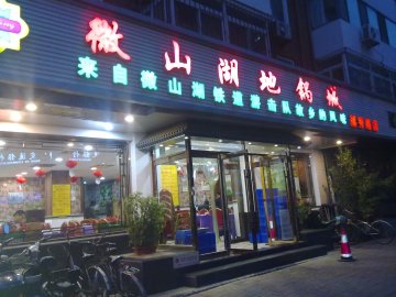 微山湖地锅城 在 河西区利民道。各种美味的地锅应有尽有啊红烧目鱼地锅、农家小公鸡地锅、微山湖麻鸭地锅、辣爆黑鱼地锅、黄豆猪手地锅、爆炒大肠地锅、庄户小黄鱼地锅、土豆牛肉地锅、江南春排骨地锅、东北山蘑菇炖小鸡地锅、老豆角炖肉地锅....各种小菜也可供你选择麻辣牛肉、酱猪手、酸辣蕨根粉、山珍野菜、蒜泥茄子......我们4个人一般去要都是两个地锅两个小菜一瓶饮料就可以了一般都是150到200元的价格。地锅都是上面一层主食---就是饼子,有白面的有玉米面的,根据自己的喜爱选择而且这饼子都是锅上一般脆脆的,锅下一面软软的,还吸收了菜品的汤汁很美味的土豆牛肉地锅很受欢迎的,大块的牛肉跟土豆,牛肉炖的相当的烂糊啊,而且牛肉很细腻的,土豆都已是面面的辣,这样的土豆很容易进味的。还有就是辣爆黑鱼地锅了,这个辣辣的吃的很过瘾呢,鱼肉是切成块状的,红绿彩椒搭配这很漂亮的,鱼肉非常的新鲜的,这个菜最爱饼子的下半部分,有鱼汤的味道,饼子一下子味道就浓郁了这家的麻辣牛肉不错,牛肉本身不辣,是沾过一碗里面的麻辣油就辣了,这样吃起来牛肉十分美味呢。…查看更多