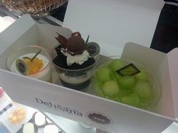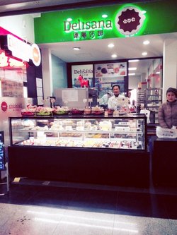 这家西点铺 在收藏范围内 想着哪一天可以拨草他们家主厨可有来头了呢 曾担任蔡家法式甜品的总厨位于三号线漕溪路站三号出口位置 不坐地铁的话 需要从屈臣氏这边上楼地址有些妖孽的 可却看到不少慕名前来的顾客“DELISANA”德丽莎娜 意为 美味 健康 享受 前面取英文的delicious 后是西班牙语健康的意思碧绿 配上咖啡字体 显得很是亮眼服务员统一的制服 透明玻璃窗内忙碌的西点师们 每日新鲜烘焙的蛋糕~~官方微信活动 有幸获得了2014小德大力神杯礼盒一份 价值80元 lucky『大力神杯』这款可不对外出售哦 迎合最近的世界杯 造型讨喜 黑炭蛋糕配上巧克力片 衬托中间带金箔的足球 浓郁芬芳 还配有巧克力豆 湿度、软度、甜度 脆度都相当ok 底下的奶油和黑色碳性物质么 吃口怎么有点沙沙的感觉 有点影响味蕾呢『蜜瓜杏仁杯』绿色小清新风 蜜瓜被挖成一颗颗球状 水分充足又甜蜜十足 夏日之清爽佳品 底部配的是杏仁豆腐 两者pk 蜜瓜完胜『牛奶芒果杯』头顶芒果 蒟蒻粒 下两层分别是牛奶布丁配芒果布丁 醇香和酸甜的结合体 适合夏日的小甜品这里的西点 品种繁多 每款都插有一枚它家的logo外带 均提供礼盒&冰袋 让你安心拿回家食用接受预定 全上海满200包邮 未满邮费25元良好的服务 考究的烘培 出彩的品质 定会吸引吃货们的目光查看更多