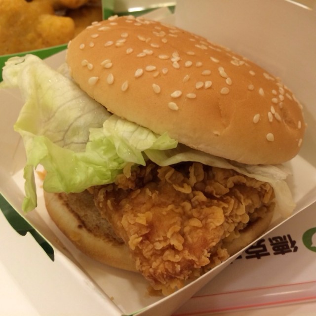 脆皮炸鸡明显没有他家的手枪腿大,不过味道是一样的好,到底是一分价钱一分货嘛脆皮炸鸡其实就是一个鸡腿,外面的面粉裹得挺厚的,不过炸出来味道很好,非常脆,而且将鸡腿里面的汁水都包裹进去了,这样汁水就不会流出来,里面的鸡肉很嫩,味道也很好。吃了之后,觉得秒杀了其他两家K和M了