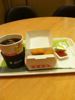 德克士我买了他家的魔法鸡块,中规中矩吧,我感觉稍微有一点点咸,鸡块应该是鸡胸脯肉,还是比较嫩的,他家的辣鸡翅也不错,比较脆,个头还是比较大的,搭配热巧克力口感香浓,这家店店面很大,生意好查看更多