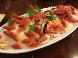 到地说话已经是快1点了,本来他们说点138档,可是看了看138真的没有什么东西,就点了198档,现在店里有活动1000元的会员卡给1100元,单点的话打75折,自助没活动,不过还是办了一张~ 付味八爪鱼,每次日料都点,喜欢有点甜甜的口感,个头也很大 炒辣白菜,不知道谁点的,不过我嗓子难受没吃 烤鳗鱼,他们知道我爱.所以不用问直接点,一盘不过瘾,直接上四盘,一点要热了吃,凉了会吃不下去 土豆泥焗扇贝,这个是店员给申请的,本来只有烤扇贝,我就问一句有焗的嘛,店员说有这款,不过是单点的,她说帮着给申请一下,后来就给上了,嘻嘻,上面洒了蟹籽,土豆泥弄的很细腻,里面的扇贝都是带黄的个头也不小 刺身拼盘,哈哈,我爱的北极贝、我爱的三文鱼,这盘不能显示出我们的水平,我们一共要了3盘,哈哈鱿鱼圈,没有什么味道,沾汁吃会好些,鱿鱼有点硬,不知道是不是炸的有点久 奶酪卷,里面的奶酪不少,里面有韭菜、胡萝卜、猪颈肉等等 金针菇牛肉卷,大妞爱的,后来又要了一份,牛肉还算嫩 扇贝,烤的,比起焗的就差了点 清酒,就要了2壶热的我喝2杯 酸奶,我说是添缝的,他们就乐我