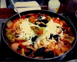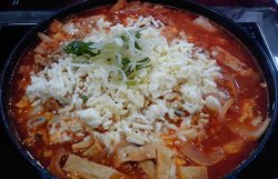 看了微博上的推荐,朋友八到了这个店,就去了。地铁二号线娄山关路下来还要走一段路的。店面不大,一不当心就会错过。点了奶酪锅+烤肉锅、面、炒饭。上来的时候啪啪满的一锅,锅里有年糕、洋葱、白菜、切成条的鱼饼、肉(根本就是肉不是烤肉好不好)、上面盖了一层奶酪。本来还以为面是给的干方便面一会儿自己放进去煮的呢,谁知上来的时候面已经在锅里了。这样看起来的话,那两个锅的量真的不算很大。煮到奶酪全都化在汤里了开吃,后来服务员说大约煮个一分多钟就可以吃了嘿~ 汤很浓很甜很辣,所有东西都很烫。那个锅有劲了,像个陀螺似的,夹东西的时候舀汤的时候,只要受到一点点力,就开始转了的说…… 炒饭是最后上的,服务员会把锅先收了,锅里剩下的东西都要倒掉的,然后用这个锅把炒饭盛上来。炒饭就是铺在锅底薄薄的一层,像是放了香油和海苔炒的,卖相乌糟糟的,味道很OK~ 回来看到点评上别人传的照片,他们的炒饭铺满了整个锅底,可是今天我们的炒饭只铺到了2/3!印象一记头差了结账不能拉卡,顺口要发票的时候含糊地说着什么理由我也没听清楚,就是今天没有发票的意思,算了…查看更多