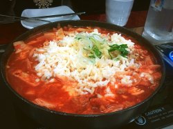 重温部队锅~ 丫信等級42012-08-2051 瀏覽 關注 这家店前阵子在微博挺火的,周六中午去兜已经人满为患了,想当初第一次的时候,也是双休日的中午,店里才小猫两三只啊,而且基本都是泡菜人民他家年糕锅是按人份点的,最少两人份起点,可以不同种类混搭~第一次去的时候特别怀念春川炒鸡排的芝士,所以点了芝士+烤肉的年糕锅,加了拉面和饭~他家芝士给的很爽气,一大把芝士粒合着年糕真是那个美味啊,8过烤肉貌似点的有点失误,米道帮芝士口味不大搭调。。。全部吃饭之后服务员会把锅子收回去加饭和海苔炒一下,然后就有香喷喷的炒饭吃啦~三人食完结账,才99!性价比蛮高的说~第二次去点了海鲜+部队锅,海鲜就两样,一个贝壳类的东东还有就是鱿鱼,种类单一了点但是量还行;部队锅基本就白菜,午餐肉和年糕,阿拉还加了筋面,这个之前么试过~么想到这个筋面就跟泡菜国的春川炒鸡排店里吃的面面一样额!入口爽滑又Q弹,之前我一度以为这是意大利面来着嘻嘻现在店里貌似满100还送个香蕉牛奶,可惜阿拉两人点的不多,8过也都吃的挺饱了厚厚~…查看更多以上食評乃用戶個人意見 , 並不代表OpenRice之觀點。讚好分享重温部队锅~ 德站琪韩国年糕料理 https://s.openrice.com/KtbT100T0O300檢舉 喵喵Τ喵喵 第一次惊艳啊2012-08-21 回覆 張貼 評分4味道4環境4服務4衛生4抵食推介美食正正正海鲜部队锅 筋面用餐日期2012-08-18人均消費¥42 (午餐)