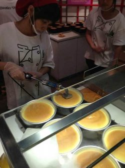 Uncle Tetsu's Cheese Cake非常有名的,星尚频道一直介绍的,生意非常好,要排队半个多小时,是现场出炉的,出炉的时候非常香,他家一次出炉要40多分钟,隔水烘烤的,蛋糕比较嫩,味道很浓郁,芝士味道还是蛮浓郁的,外面还有个他家的卡通logo,价格很实惠,39元一个。查看更多