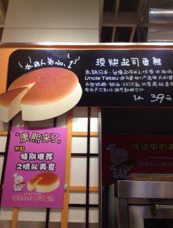 因为是平时的十点半左右,根本就没人排队。LOGO蛮可爱的。店面布置较醒目,红黄两色的格纹和红色的包装盒,黄色的蛋糕图样,很简单。也许生意好的缘故,店员态度很冷淡。现烘起司蛋糕39元一枚,6寸大小。包装袋加包装盒,里面还垫了一块布防滑动,可是不提供勺子,只能回家吃。看介绍用的是进口的天然鲜奶酪和100%鲜奶,不知会否如胖达人那样有什么猫腻?就是轻乳酪蛋糕,蛋糕色泽金黄,趁热质地很松软,吃起来很滑腻入口即化。一点也不甜腻,奶香浓郁,但芝士味道不够浓,甜香有余酸味不足。放入冰箱冷藏后酸味稍加重一点。总体感觉还行,就是价格小贵。只是在同质化的店铺越来越多等大家没有了新鲜感时,店家又能走多远?…查看更多