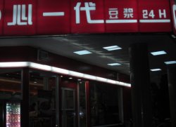 市六医院急诊处对面的心一代 ,吃的人不少的,和永和大王差不多的快餐店,分店不是太多,环境一般,算干净的,小馄饨肉比较少的,量也不多,随便吃吃的那种,豆浆是现磨的,味道不错呢,油条也有的,比较小,典型的上海小早餐,量普遍少,呵呵。24小时营业的,赞的。