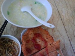他们家的一直人气很旺,而且价格上也都很大众化。除了他们家粥为招牌外,猪排也是其最大的特色了。皮蛋瘦肉粥,粥的米个个都很饱满,不会很薄以免破坏他的口感,喝上去很鲜,还有淡淡的皮蛋味,由于是现熬的,所以等的时间稍微长一点。还有他们的猪排,切成一条条的,蘸上酸辣酱,很有独特风味,咬上去去,外皮是脆脆的,里面的汤汁不完全的流失,超过瘾!查看更多
