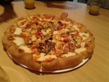 必胜客出新菜单的时候总是要尝一下,不过最喜欢的始终还是海鲜至尊和超级至尊,这两种的料足,口感层次丰富。偶尔想尝下别的,点个双拼也不错。披萨有薄饼和厚饼,刚烤出来的饼底柔软喷香,奶酪可以拉出长长的丝。小吃类的不怎么实惠,面和饭的量不大,沙拉是最不值得,感觉就是寥寥几片食材。…ดูเพิ่มเติม