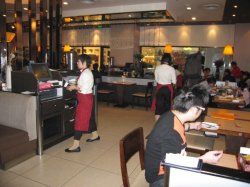 【交通】银泰百货一层底商,位置不多,二楼还行。【环境】环境一般吧,周末等位挺严重的。【服务】服务一般吧。【价格】价钱还行吧,可以接受。【味道】炒饭,分量还挺足的,一大盘,味道也不错,稍稍有一点点黑胡椒的辣味,不是那种辛辣的感觉,倒挺提味的,还挺好吃的,里面的腊肠有点油,还挺香的。玉米粒放的还挺多的。意面,稍稍有点咸,也有黑胡椒,肉块很嫩很容易嚼烂,也特别入味,香菇有点少,要是再多点就更好了,柿子椒的味道比较大。忘记饮料的名字了,里面的珍珠也是那种爆浆的,皮儿特别的薄,而且特别甜,还挺好喝的。…Read More