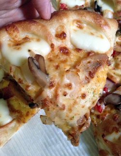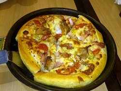 来婆婆家,他们打牌不爱做饭,我就带孩子来龙德广场玩,顺便跟他们从必胜客带了披萨回去。我总觉得店里的披萨跟外送的那种不太一样,我觉得料比较足,芝士稍微厚一些。我们点了芝心超级至尊比萨和田园培根披萨,还有意面米饭等。芝心至尊就是再至尊披萨的基础上,饼皮是芝士酱的,至尊的料很足,有烤肠、口蘑、培根等,挺厚的,就是拿回家稍微有点冷了,拉丝效果一般般了,而且拿走的话,店里没有配送的辣椒仔,只给了几代番茄酱。田园培根就是菠萝丁和培根,芝士稍微少了。点。而且外带省了不少饮料钱,的确比在店里吃划算。查看更多