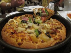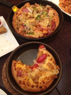 必胜客最近搞促销,pizza有买一送一的套餐貌似是,周二好像是超级至尊,但是我没赶上,吃的时候没有促销。但是我的最爱还是超级至尊比较喜欢厚饼皮的,吃起来有口感。芝士夹心的感觉吃多了会腻,所以一般不会选择的。炸鱿鱼圈挺好吃的就是量比较小,炸虾的感觉也不错,重点是量有点小,其他还是ok的。查看更多