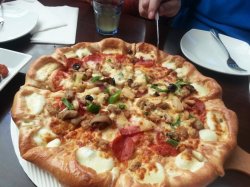 他家最好吃的当然是披萨!!但我更喜欢吃他家的意大利面朋友喜欢吃他家的新奥尔良风情烤肉、香脆鸡肉、烤翅也都很好吃,说是味道特好,我吃着有点腻。鸡翅和鸡茸蘑菇汤还可以,特别是鸡茸蘑菇汤,真的很鲜另他家的焗薯蓉也好,可以试试查看更多