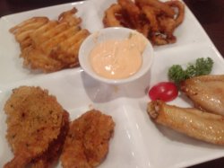 吃了好久的必胜客,还是觉得下午茶最划算~昨天又来必胜客吃啦,点了新出的几道菜,突然感觉没有原来想象的好吃了,吃的鸡腿焗饭,后来都冷掉了也没有吃掉,鸡翅也觉得食之无味了呢,也许是压力太大吧~好吧,还是说说小吃吧,拼盘小吃,50元,2个串鸡腿,4个鸡翅,还有4个凤尾虾和薯格,薯格没有以前好吃了,最喜欢的是新的鸡翅,就是串起来的,长长地那个~味道还是不错的~查看更多