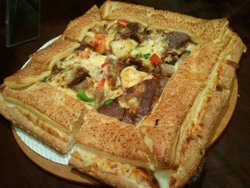 这家店在步行街上,人气一直很旺,经常要排队。地方稍嫌拥挤,不过有聚会用的大桌,还蛮不错的。牛肉披萨很喜欢,不同于其它的口感。这个外皮就是酥脆的,一口咬下去,很松很脆很香,再加上浓浓的芝士味和新鲜又大块的牛肉,层次分明,口口满足,赞!