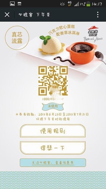 到福州路文具批发这里买彩铅来着,买完又跑去南京路逛了一圈,天气闷闷的走不动了。正好看到必胜客,想着前一段时间必胜客微信活动,挣了一份免费的下午茶,月底就过期了,今天正好用掉。生意很好,基本坐满了人,我上了二楼,地方挺大的。我说兑换,服务员二话没说的就帮我兑换了,签了字不一会东西就端上来了。