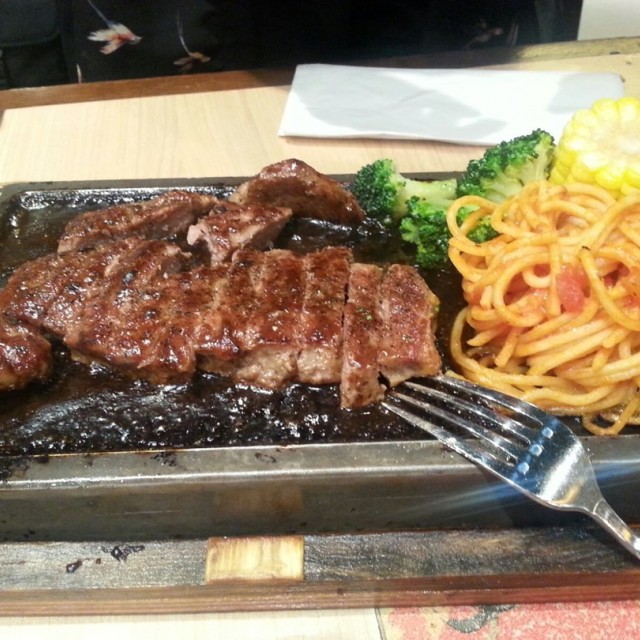 人超级的多,不过节门口都是满满的等位的人,真搞不懂。吃起来还算可以吧,他家的牛排味道还是不错的,貌似不能选几分熟,问都不问就给上了,酱是可以选择的,蘑菇酱和黑胡椒酱,烤的还是蛮好的,里面很嫩,多汁,吃到嘴里蛮香的感觉。