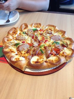 周末去吃的,来的早,不用等位。里面人还是蛮多的。点了2人的套餐,披萨加了芝心。15元。记得以前是10元。披萨很大。芝士味道很浓的。还有套餐里的鸡翅,有点辣。最后的冰淇淋,味道也很淡。他家除了披萨,别的一般。查看更多
