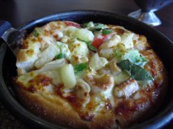 前几天中午到宝山要参加下午的会议,找个吃饭的地方,朋友喜欢必胜客,就去它家了,为赶时间,就点了双人套餐(138元)。小吃拼盘(单点约32元)鱿鱼圈:味较鲜美,量也不少,好吃; 薯格:沾着酱吃,较脆; 鸡翅:它家的招牌,口味保持水准; 风尾虾:里面的虾肉较新鲜,就是味道偏淡了点;烤鸡排(单点32元):吃了二个翅根,烤得很入味,自我觉得比奥尔良鸡翅好吃,提供的黑胡椒酱味很好,淋在面上吃,口味更佳,特推荐。海鲜批萨:面上料较多,芝士味较浓,一直喜欢它家的批萨;冰淇淋芝士蛋挞:第一次吃这个东东,冰淇淋奶味很浓,美味;饮料点了脆粒奥利奥:因为没吃过,就尝鲜一下,口味较清淡; 卡布基诺咖啡:朋友点的,大众化;它家的环境较好,很喜欢这个布局,服务员也很热情,尝尝不错。查看更多