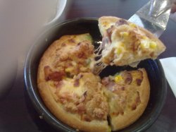 必胜客----美味西式餐点 yanyanstill等級32012-12-2353 瀏覽 關注 必胜客一直算是比较喜欢的餐厅,做的西餐味道的都还不错,环境也一直搞得蛮好的,服务质量也保持的不错,很少听到说必胜客的服务态度怎么怎么样,素质都还蛮好的,和好友小聚,品尝西式美餐,解决工作日午餐,必胜客确实都是合适的选择。意式炒饭----西餐中,意大利的口味与中国最接近了,都是有饭有面,还都喜欢把东西混在一起烩成一锅。这道意式炒饭炒饭深得我的喜爱:类似于中国炒饭的制作方法,将熟饭与各色食物炒至而成,配料有玉米和切成丁的青椒,由于用的是橄榄油,又与中国的炒饭形成的差别,不会很油腻,无论从口感还是味道都是不错的~~建议大家品尝袄~~这也是一道炒饭,海鲜意饭,配料不同,加了章鱼,丝丝章鱼丝混在饭里面,在爽口的炒饭中多了丰富的口味。不错个人不甚喜欢章鱼的味道,而且量也不是很多,有兴趣的不妨试一试袄。来必胜客怎么可以不吃必胜客的披萨呢?必胜客的披萨一直是它主打的品牌,一流的口感,加上不是很贵的价格,确实让人青睐,而且跟普通的意式餐厅区别较大。轻轻的挑起一块Pizza,浓厚的芝士可以拉成丝,可见芝士的数量及质量都是很不错的~~上面的馅料也很棒,有玉米、香肠等等,每口pizza咬在嘴里除了香气扑鼻,还有各种不同的惊喜,吃到嘴里面满满的都是享受。 必胜客的甜点也很不错,这个红豆奶茶就是例子。一眼看上去和外面路边店里卖的奶茶没什么不一样,量还不如外面的大,但是当你吃到Q的丸子的时候,你才发现必胜客的用心:每粒丸子里面都夹着红豆的心,一口咬下去很Q的口感还有甜甜的红豆味道,这是我在其他店里没有尝试到的,所以这也值得大家尝试袄~ 柠檬红茶----做的很用心的柠檬红茶,柠檬数量挺多,红茶是先泡好的,加上几块冰,一股小资情调就透出来了,可惜我比较偏爱甜食,而这款红茶比较正宗,基本没有甜味,所以不怎么接受,有兴趣的可以尝试啊。。蔬菜沙拉----健康生活从我做起~~到西餐告别浓油赤酱,体验健康生活,沙拉就是不得不尝试的。小番茄,黄瓜,玉米粒和生菜,都是健康的元素。上面再浇上沙拉酱,一口蔬菜的香气及爽脆,加上沙拉酱的甜味,确实值得大家品尝。土豆泥是我的大爱,而必胜客的土豆泥也不例外。一个土豆的量做出的土豆泥,下面是生菜承托,上面是小番茄点缀,里面伴有沙拉酱,味道是很不错的,可惜量太少,吃的不过瘾啊~~ 哈哈,小吃怎么少的了?必胜客小吃丰富,下面给大家呈现一份拼盘。鸡翅、薯格、猫耳朵(昵称~~)都是难得的美味。尤其是鸡翅,更是不容错过,味道香甜,口感鲜嫩,蘸上特制的番茄酱,酸酸甜甜中鸡肉的香味被烘托的无比诱人,大家还不赶快去品尝?总之,必胜客是做西餐的老店了,也算是有口皆碑~~经典的小吃也算是口口相传,这么多年稳定的经营,他们的口味确实值得信赖,再加上时不时搞个半价,还有工作日午餐,那时候去确实很划算~~大家可以多乘机尝试袄~…查看更多+ 4以上食評乃用戶個人意見 , 並不代表OpenRice之觀點。讚好分享必胜客----美味西式餐点 必胜客 https://s.openrice.com/KtbT100Oz61W0檢舉 張貼 評分5味道5環境5服務5衛生5抵食推介美食海鲜饭披萨珍珠奶茶柠檬红茶蔬菜沙拉土豆沙拉小食拼盘炒饭珍珠奶茶,披萨人均消費¥40 (午餐)