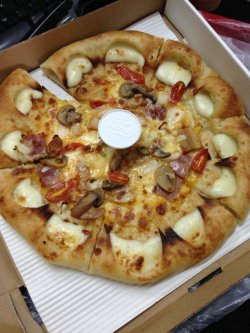 这家必胜客位于控江路吉买盛超市里公司午餐 同事说必胜客每天会有一款半价菜品大家决定试试我和另外2个女同事点了一份披萨 半价35.5元十点半在网上下的单 十一点整就送来了 非常速度披萨拿出来来时热腾腾的 香味立马弥漫了办公室披萨比较大的 3个女生每人可以分到2片一口下去 浓浓的芝士能拉丝哦 香味浓郁除了芝士的香 还有椒香 和肉香结合在一起非常完美 口感丰富 层次鲜明披萨再点上其他的小食 还是挺饱的 价格也很实惠以前网上订餐不收外卖费的 现在可能活动结束了说要收8元快递费 还好同事一起平摊 每个人也就1,2元 总体来说性价比很高 下次试试别的菜品…查看更多
