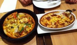这家店开在仲盛里面,环境很不错。周五晚上,跟朋友过去,外面排了很多人,等了一会位。终于轮到我们了,我们进去看了下菜单,食物很让人垂涎欲滴。点了一份同事推荐的海鲜芝心匹萨,饼皮薄薄的,脆脆的,芝士味很浓,的确很不错,下次来仲盛逛,还是会来吃的。查看更多