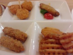 雪域蛋糕,鸡翅,薯格,凤尾虾