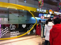 逛凯德购物中心的时候有时回去地下一层买点东西吃或者喝的喝,老实说地下一层的环境不怎么好,不大,而且有点乱,我一般随便买点东西就走快乐柠檬一下电梯就能看到,黄色的开爱招牌很吸引眼球快乐柠檬有很多独一无二的口味,喝了奥利奥曲奇奶茶,有点甜了,下次试试别的查看更多
