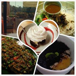 地中海风格,环境很好,服务也很好的一家餐厅。菌汤还行,虽然菌很少但是汤味道很浓。鲜花椒菜汤滚鱼片很好吃〜 绿色的菜汤,里面有莴笋片和魔芋,鱼很嫩,入味,微麻 非常不错!什么虾仁鸡毛菜 这个菜菜的汤挺好喝的 就是菜做的有点老了 不过味道还是可以的。砂锅粉丝抄红牦,就是粉丝和鱿鱼吧 反正比较不好嚼 味道也一般 这是我们唯一省的一道菜 基本没怎么吃就。。自酿米酒,味儿挺浓的。个人比较喜欢米酒 觉得还可以。不习惯喝米酒朋友还是要慎重滴〜菠萝甜仁饭,这个要注意喔!点菜的时候我没有问,本来以为是类似于泰式的菠萝饭 白饭里面有虾仁腰果菠萝的那种,但实际不是哟〜 它是紫米薏仁的那种 粘粘的 不过貌似很养生阿〜 查看更多