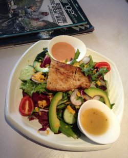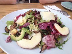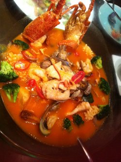 这家餐厅特别有情调,看门面很简单,但是不失时尚感,很现代的一家餐厅,有点第五大道的感觉。他家的沙拉不错,盘子很大,沙拉样色很漂亮,品种多样色彩缤纷。海鲜汤的容器是大玻璃碗给人很干净的感觉,里面海鲜品种真不少大虾,鱿鱼、旮旯、蚌……还有绿色的西兰花点缀,搭配橘色的汤,漂亮极了,味道也非常鲜美。查看更多