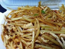 【位置】六铺炕北小街8-2【环境】经济实惠。【服务】服务一般。【价格】价格不贵。【味道】很家常的成都小吃,什么菜都使很多的油,而且好多都是放辣椒的,点了一个很家常得肉丝炒土豆丝盖饭,分量不错哦,满满的一份,口味还不错,比较粗的土豆丝,口感很好的,菜汤里面的油量可以接受。