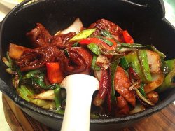 这家饭店吃过以后,总得感觉还好,又去吃了。没有点他们的狮子头,太肥腻了。推荐八宝鸭,鸭子外面的皮油油的,里面的肉酥酥的,略有鲜味,里面的糯米则偏甜一点,点了一个大肠煲,大肠洗的很干净,没有异味。煮的时间很足,酥而不烂,依然有嚼劲,酱汁入味,很浓,查看更多