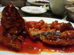 呵呵 扬州菜里最有名的就算这个狮子头了.上来的狮子头个头老大的,咬一口下去,充满了肉香的味道.里面吃的出只加了一点点的面粉,除此以外都是肉:)肉咬起来感觉挺结实的,不是软软的那种.还有个八宝鸭也算是招牌菜了,鸭肚子里都是其它宝贝,出了鸭肉外,菌菇阿,糯米阿,和着酥酥的鸭肉吃,非常好吃查看更多